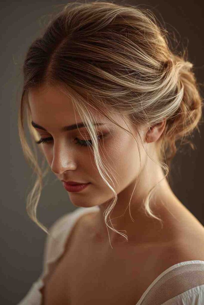 This style has soft, cascading strands pinned into a bun. It’s perfect for dates, weddings, or formal events.