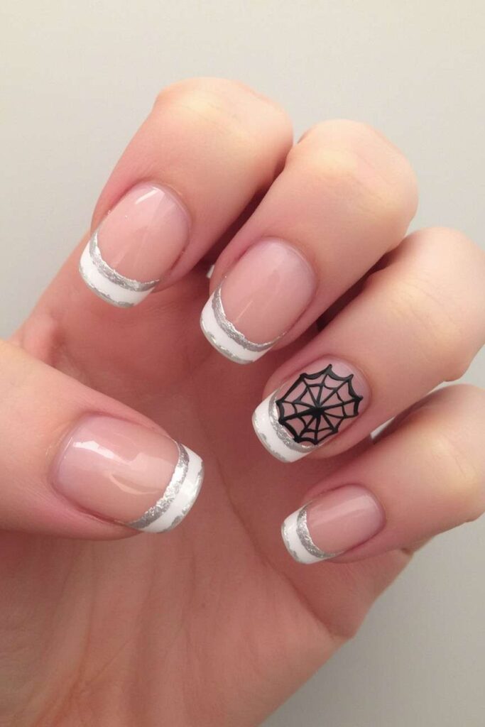 Modernize your French tips with cobweb accents. Use black or silver polish to draw fine web lines along the tips. This look is subtle yet festive, keeping your nails Halloween-ready without being over-the-top. It’s ideal for those who want something elegant but seasonal.