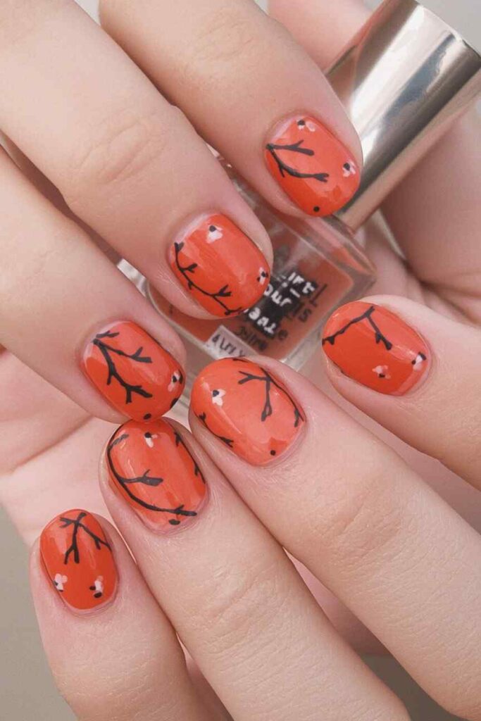 Embrace a cute twist on spooky with pumpkin-inspired nails. Use burnt orange polish and add small black jack-o’-lantern faces or vine patterns. This look is festive and fun while still giving a Halloween edge.