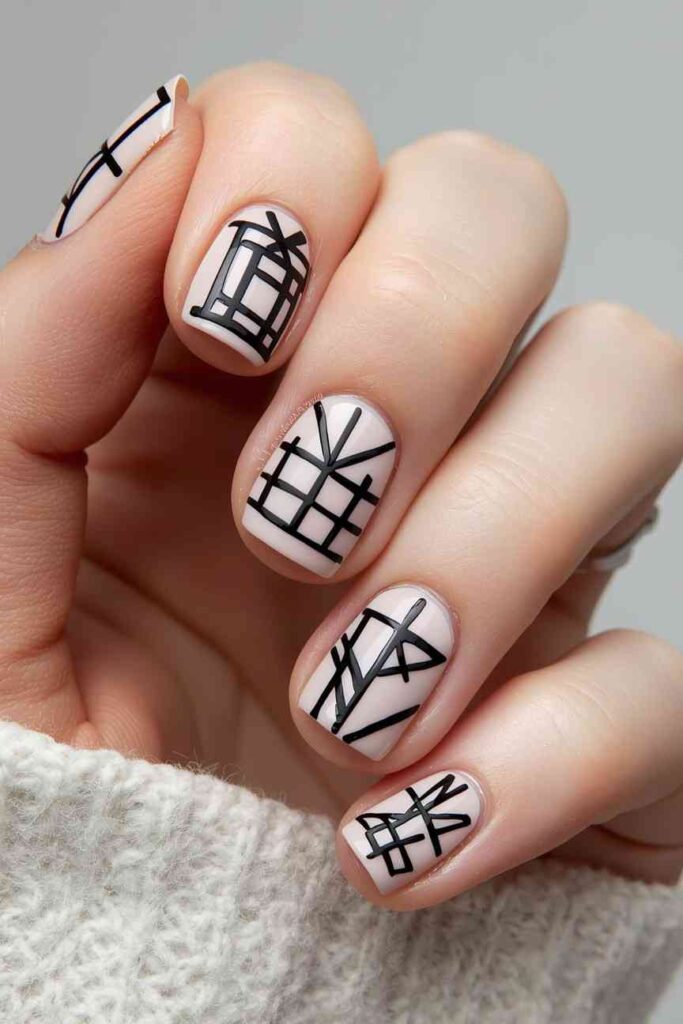 Use thin black lines to outline a pumpkin on one nail. Keep the rest nude or pastel. Minimal, chic, and elegant, this subtle design gives Halloween charm with understated style.