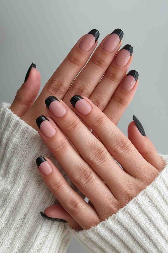 Paint just the tips of your nails black for a modern take on Halloween nails. Keep the base nude or light-colored for minimal contrast. Add tiny dots, stars, or subtle spider motifs for a seasonal effect. The black tip accent is clean, contemporary, and perfect for understated yet festive Halloween nails.