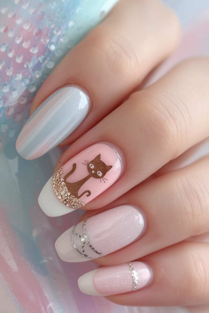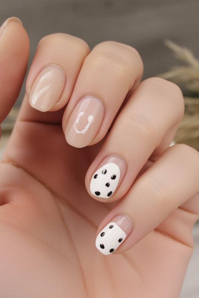 Use a single matte black nail among neutral nails for dramatic contrast. Add a small moon, star, or spider for a seasonal touch. This minimalist approach is chic, bold, and perfect for Halloween without appearing too over-the-top.