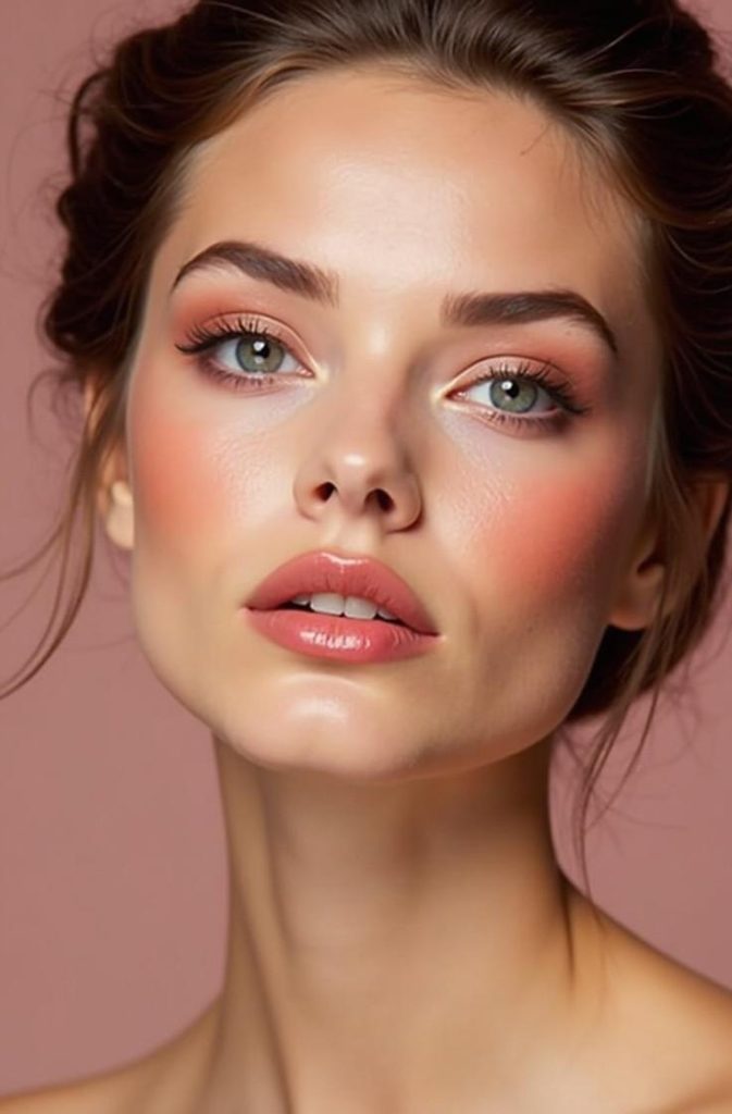 A blush-focused natural look brings warmth and freshness to the face, creating a soft, love-inspired glow. This makeup style highlights the cheeks as the main feature, giving your complexion a healthy, youthful appearance.