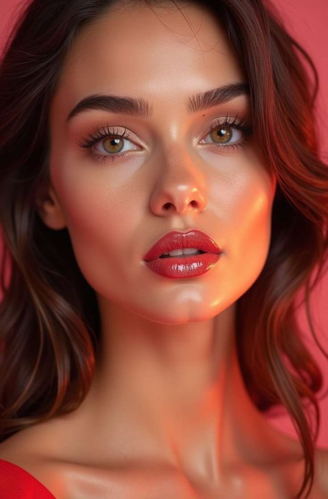 The natural glow with lip tint look focuses on radiant skin and a soft wash of color on the lips. This makeup style feels youthful, effortless, and romantic, making it perfect for Valentine’s Day.