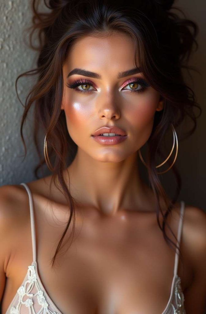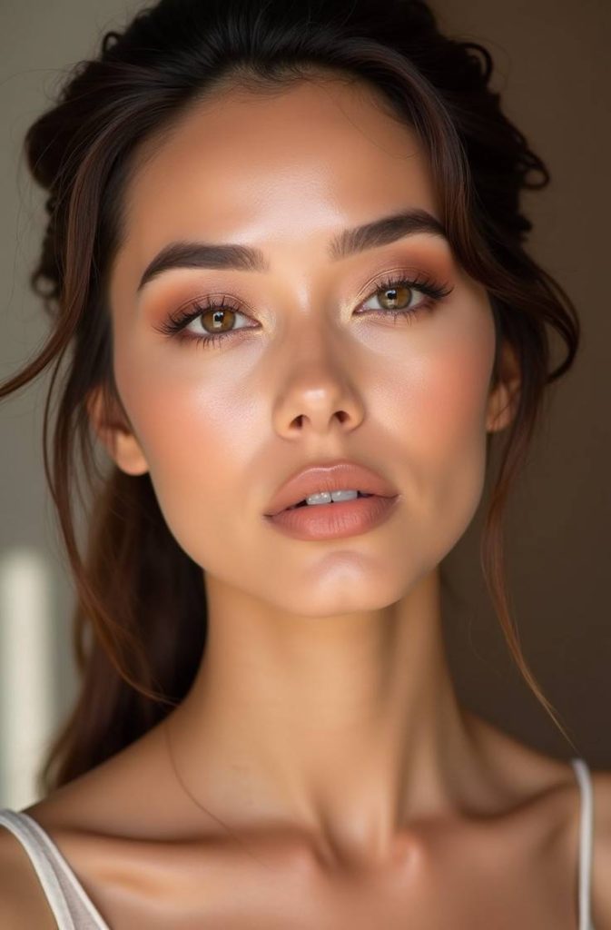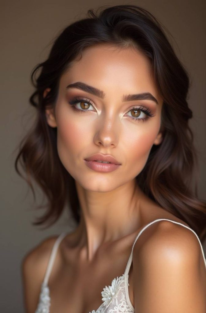 The result is skin that looks fresh, hydrated, and effortlessly glam. This makeup style works perfectly for both daytime and evening plans, giving you a polished yet approachable appearance that feels intimate and elegant.