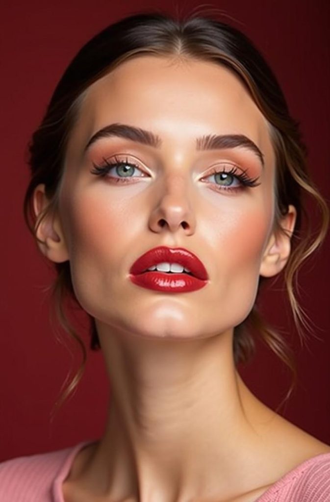 Glossy nude makeup is all about soft shine and natural elegance. Nude tones keep the look understated, while gloss adds freshness and dimension. This style enhances your natural features without feeling heavy, making it perfect for intimate Valentine’s Day dates.