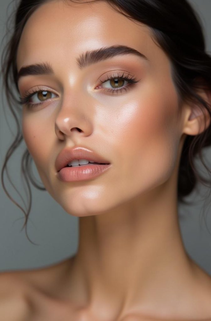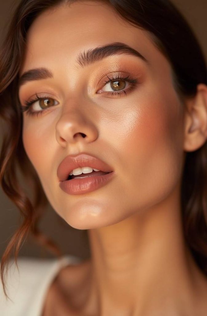 Whether you’re going for a casual outing or a cozy dinner, glossy nude makeup feels modern, romantic, and effortlessly pretty.