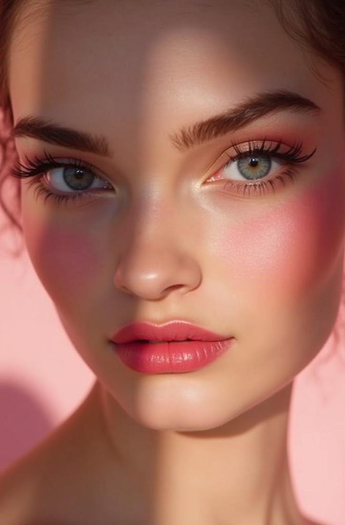 A natural pink blush look adds a soft, romantic flush to the cheeks that instantly brightens your face. This makeup style mimics the natural glow you get from happiness or warmth, making it perfect for Valentine’s Day.
