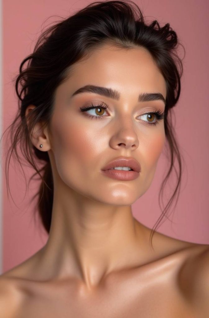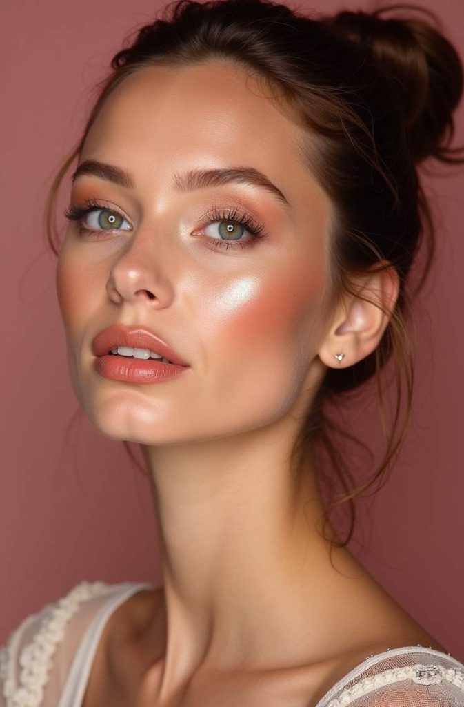 The blush becomes the main feature, while eyes and lips remain simple and natural. This look is ideal for both day and evening plans, adding warmth and freshness to your complexion. It’s an easy way to look radiant and naturally beautiful.