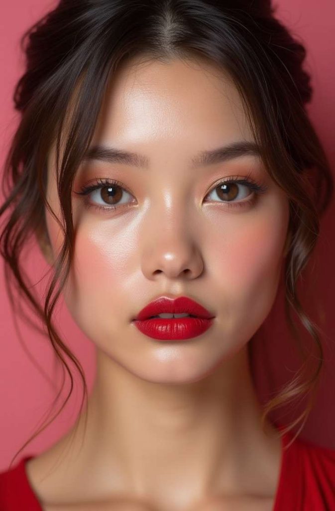 This look works beautifully for dinner dates, evening outings, or special celebrations where you want to make a statement. Whether paired with minimal eye makeup or subtle winged liner, a red lip never fails to feel powerful and feminine, making it a must-try Valentine’s Day makeup choice.