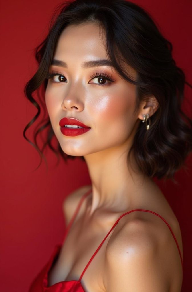 The classic red lip look is a timeless Valentine’s Day favorite that instantly adds confidence, romance, and elegance. Bold red lips create a striking focal point while keeping the rest of the makeup soft and balanced.