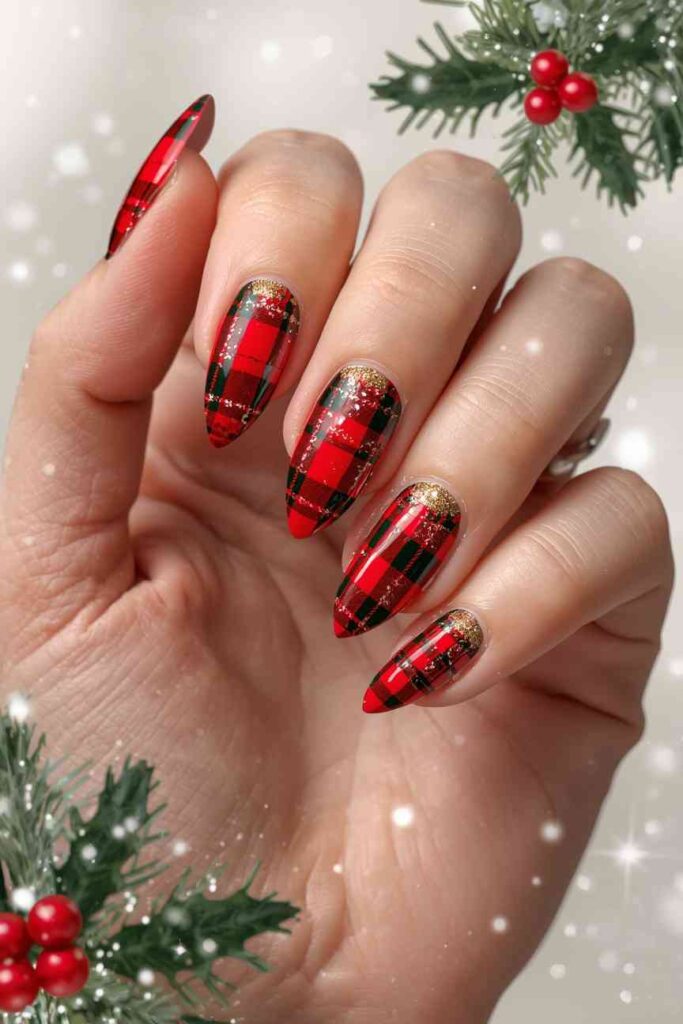 Whether you choose a full plaid set or mix with solid red accents, the look feels nostalgic and cozy. This design brings the warmth of winter fashion right to your fingertips.