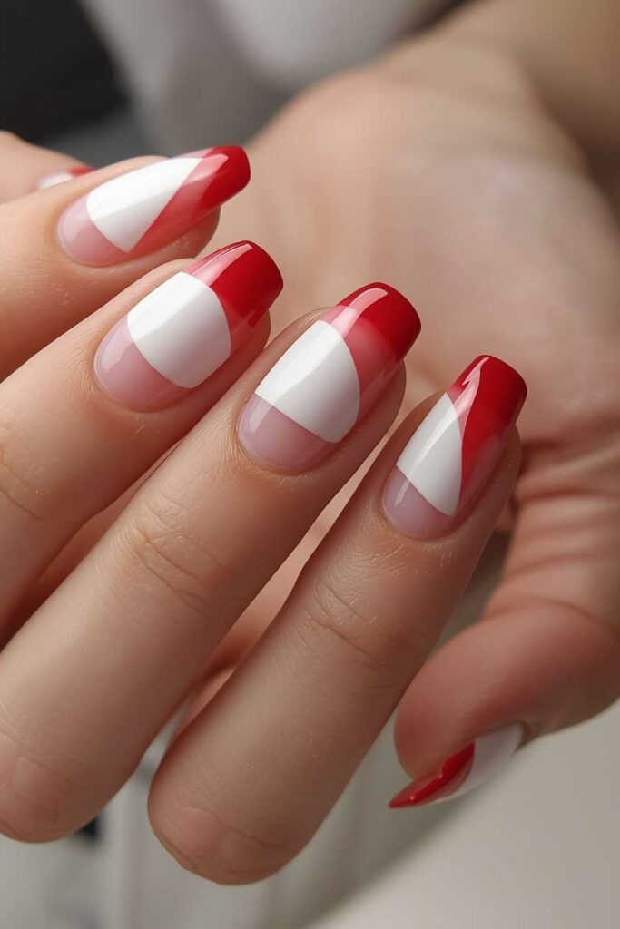 This fresh take on a winter French manicure features crisp snowy-white bases topped with bold red tips. The contrast between the soft, clean white and striking holiday red creates a festive yet refined look that feels both modern and classic.
