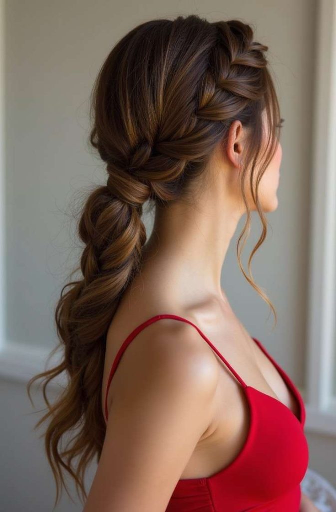 The braid adds charm without overwhelming the look, making it suitable for both casual dates and formal dinners. This hairstyle works beautifully on medium to long hair and complements a variety of outfits, from flowy dresses to tailored ensembles.