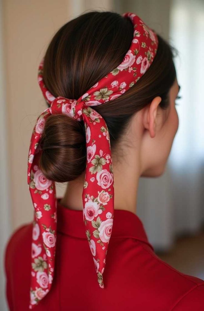 The elegant hair scarf style adds instant romance, color, and personality to any Valentine’s Day look. Incorporating a scarf into your hairstyle creates a chic, fashion-forward appearance while maintaining a soft, feminine feel. This style works beautifully with ponytails, buns, or loose hair and is suitable for all hair lengths.