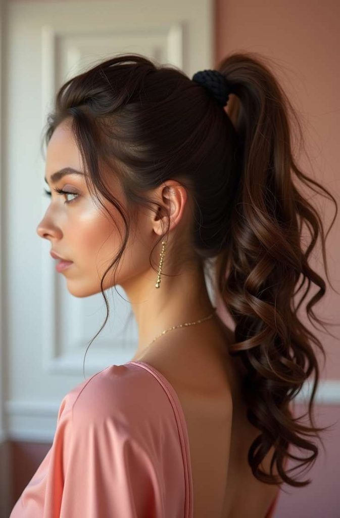 It works beautifully on medium to long hair and complements both casual and dressy outfits. The loose finish allows curls to move naturally, framing the face and enhancing the overall look. Whether worn high or low, the curly ponytail offers versatility and romance.