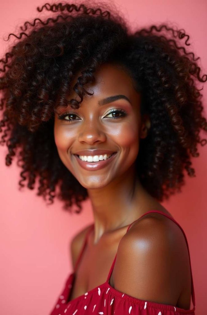 Natural curls with defined texture celebrate authenticity, confidence, and beauty. This romantic hairstyle embraces natural hair patterns while enhancing them with definition and shine. Perfect for Valentine’s Day, defined curls create a soft, voluminous look that feels both powerful and feminine. This style highlights facial features and adds movement, making curls appear healthy and full.