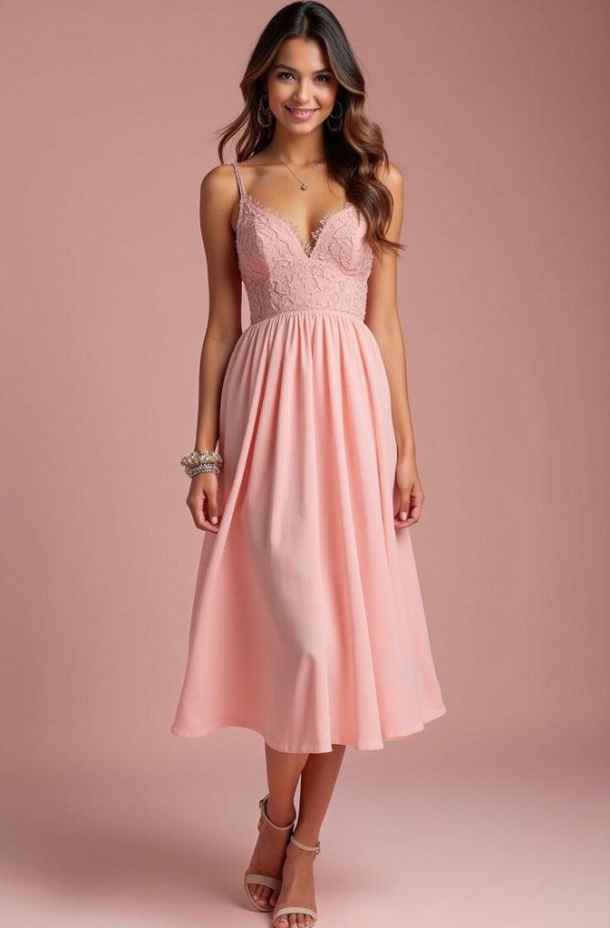Flowing fabrics allow easy movement, making it practical as well as stylish. A soft pink midi dress feels effortlessly romantic, enhances natural beauty, and creates a graceful look that suits a wide range of body types and Valentine’s Day occasions.