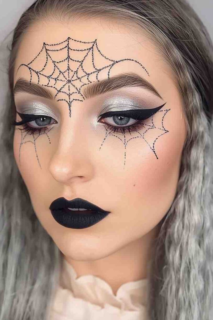 Draw delicate spiderwebs using liquid eyeliner around your eyes or forehead. Complement with metallic silver eyeshadow and dark lipstick for a creepy-cool touch.