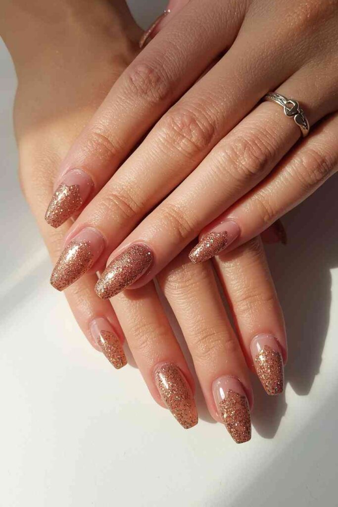 Bronze glitter adds sparkle and warmth to your fall nails. Use as accent nails or subtle highlights over dark bases. Its shimmer complements earthy tones beautifully, creating a festive and bold manicure.