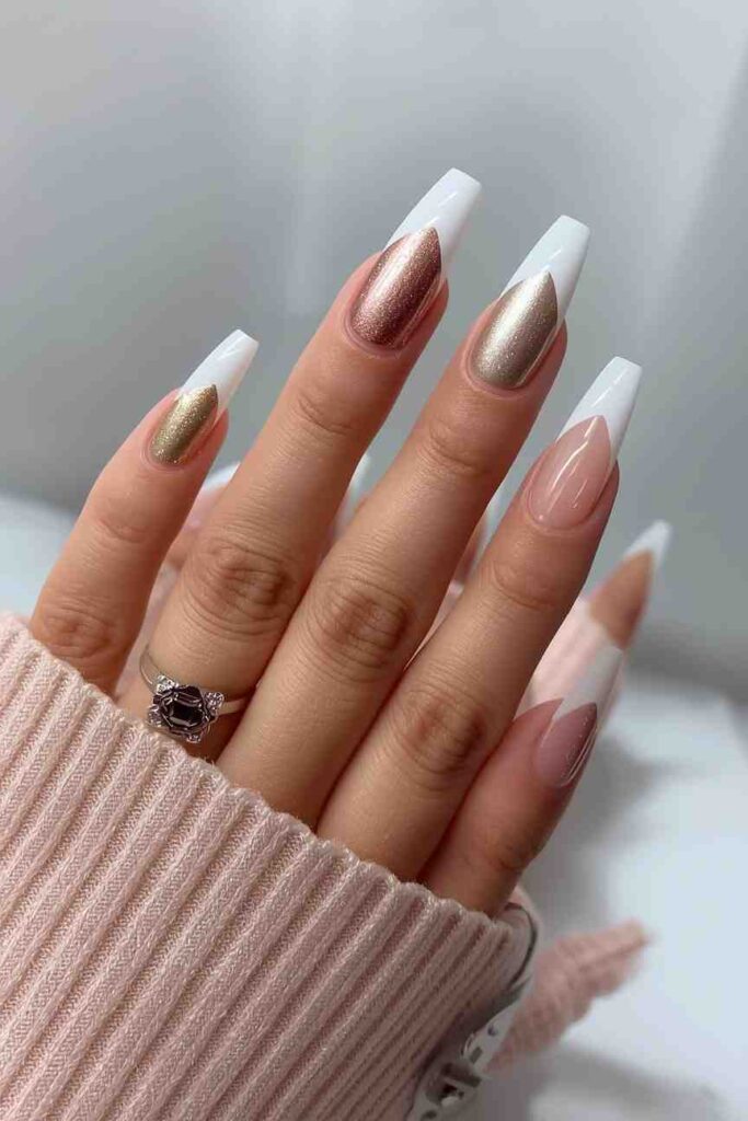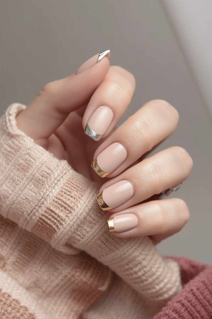 Update the classic French manicure with metallic tips. Gold, silver, or copper edges over neutral bases add a modern twist to a timeless look. This style is versatile, chic, and perfect for daily wear or special occasions.