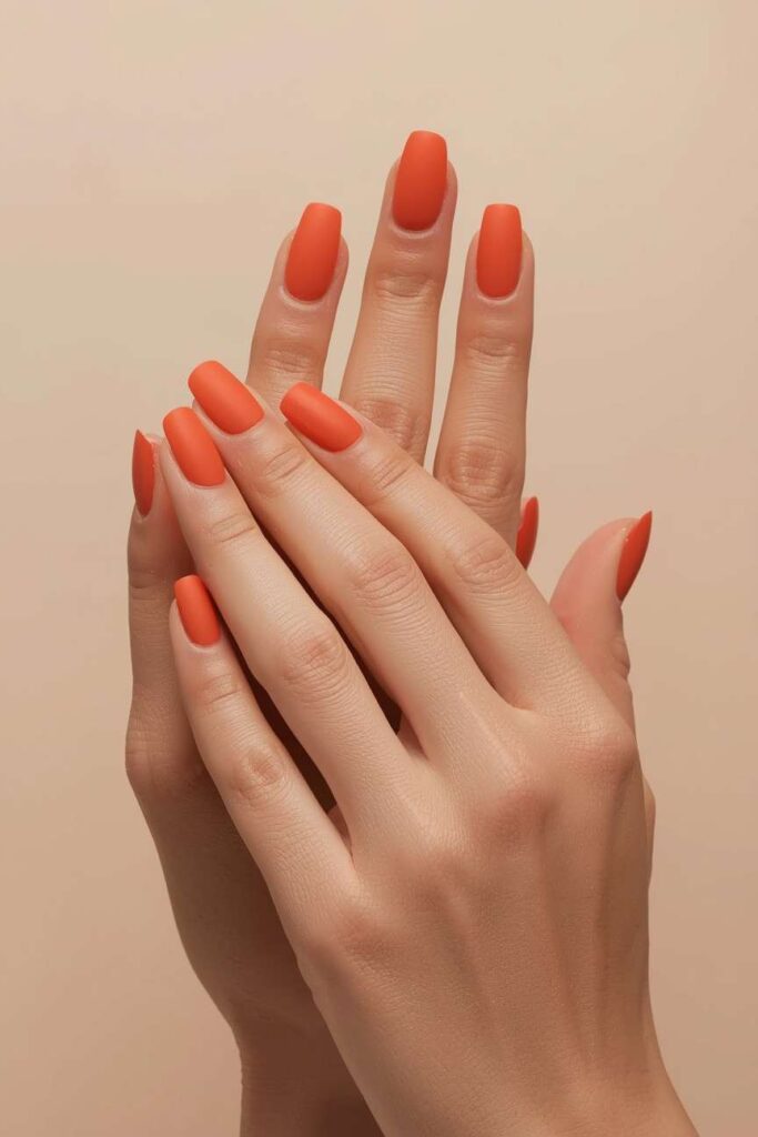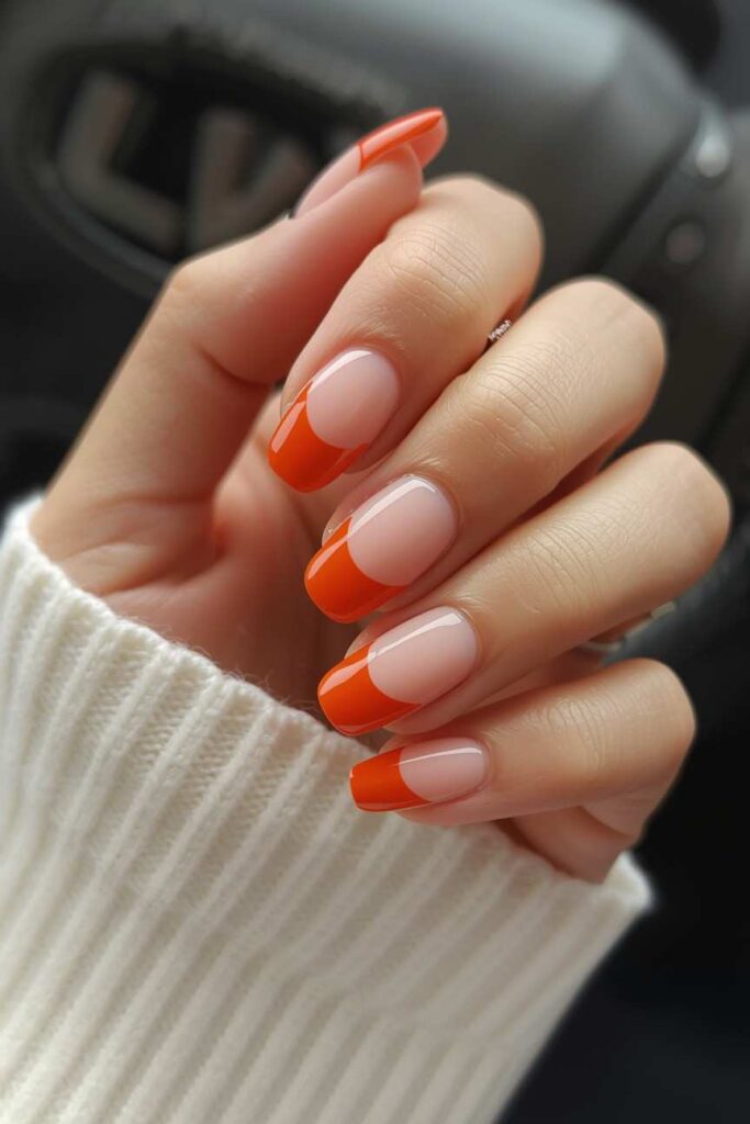 For a twist on French tips, paint matte burnt orange tips over neutral bases. Add small cream or gold dots for subtle charm. This look is minimalist yet stylish for autumn outings or workdays.