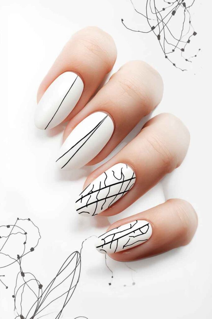 Line art designs over neutral bases can include leaves, mushrooms, or abstract shapes. Fine black or white lines on nude, beige, or muted brown backgrounds offer a modern, artistic vibe. This style is subtle yet stylish, ideal for minimalists who still want a seasonal touch.