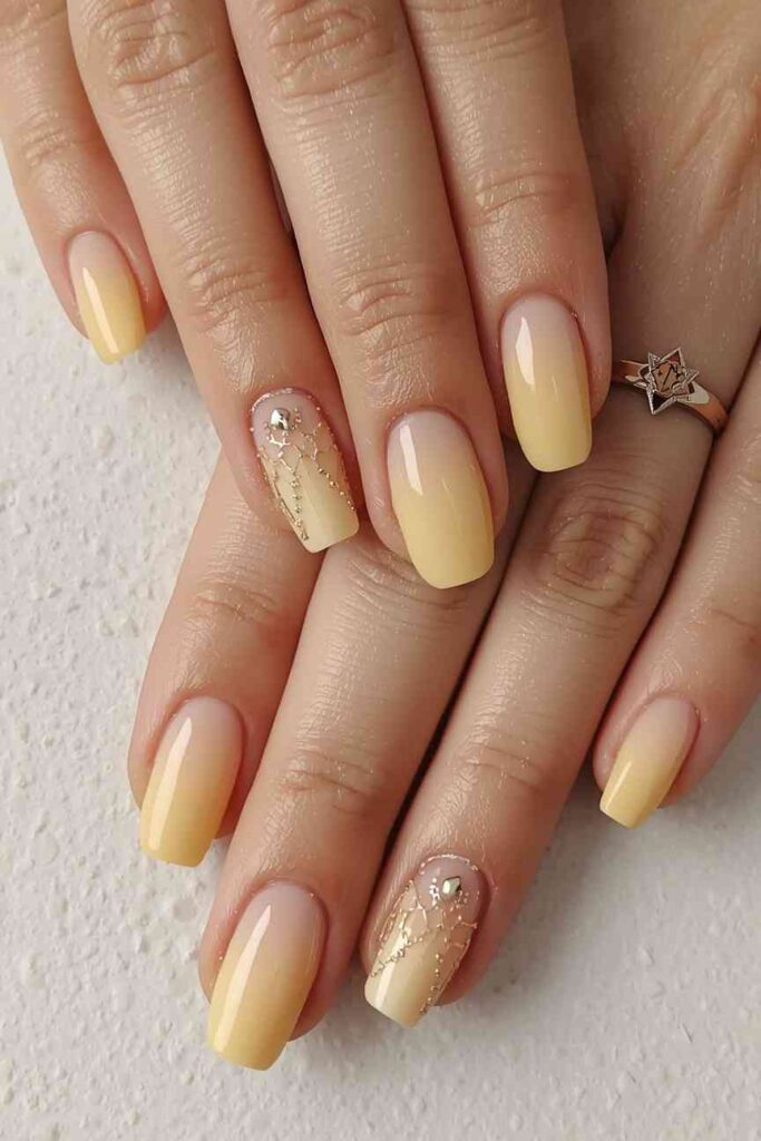 Muted mustard and golden yellows bring seasonal brightness to your nails. Paint one or two accent nails in this hue while keeping the rest neutral or brown-toned. Adding minimal dots or geometric lines enhances the look without overpowering it. This style is cheerful, subtle, and ideal for autumn-inspired everyday nails.