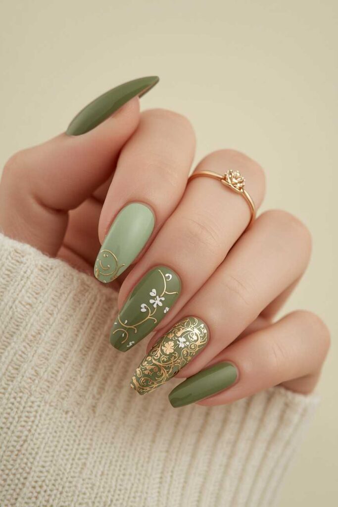Olive green nails offer a muted, earthy aesthetic ideal for fall. Add tiny gold or cream dots near the cuticle or along tips to enhance the design. This understated style is perfect for minimalists and works well with casual or formal autumn outfits.